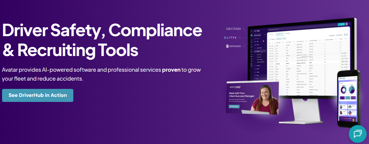 AvatarFleet provides a DOT compliance platform that combines software with professional services, focusing on driver management, safety, and recruitment. The system, known as DriverHub, automates tasks like driver qualification file storage, electronic signatures, and medical examiner verification, aiming to eliminate paper-based processes. It integrates with various systems, including payroll, HR, and telematics, to centralize compliance and operational data.