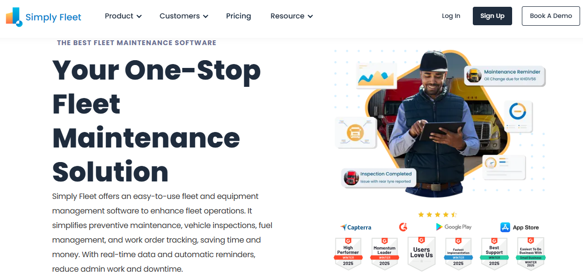 Simply Fleet provides a cloud-based platform for fleet management, with a focus on maintenance, vehicle inspections, and DOT compliance. The software streamlines tasks like preventive maintenance scheduling, fuel tracking, and work order management, using real-time data and automated reminders to keep fleets operational. It integrates with telematics systems for mileage and fault code syncing, and offers a mobile app for drivers to upload receipts or complete inspections on the go.