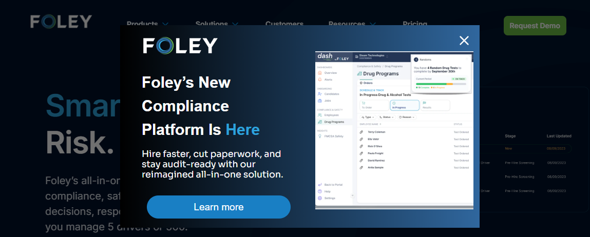 Foley offers a consolidated platform for DOT compliance, designed to manage driver and fleet requirements under FMCSA regulations. The software centralizes tasks like driver qualification files, drug and alcohol testing, and clearinghouse queries, aiming to reduce paperwork and simplify audit preparation. Real-time alerts notify users of driver violations or expiring documents, enabling quick responses to potential issues.