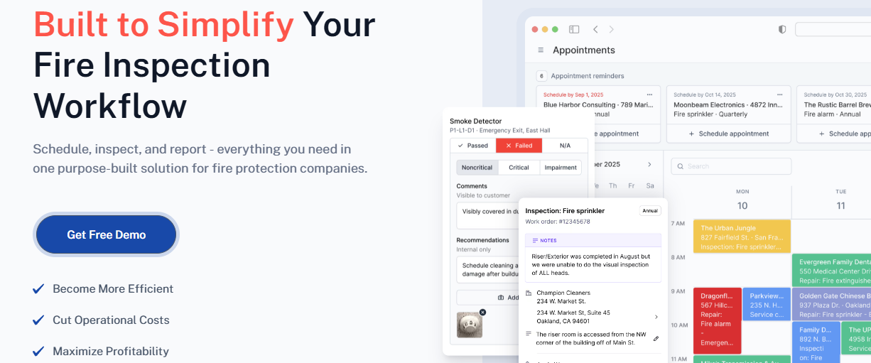 Inspect Point is a platform built for fire protection professionals that pulls a lot of tasks into one place. Technicians can handle inspections on an iPhone or iPad without using paper, then sync everything back when they’re done. If they spot any issues, they can log them with photos and have those carried straight into the final reports. That makes it a lot easier to stay compliant and reduces follow-up work.