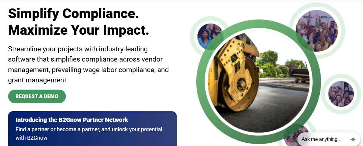 The software supports monitoring, reporting, and workflow management across compliance programs. Agencies can track contractor performance, manage grant requirements, and ensure that funding rules are met. By centralizing these processes, B2Gnow allows public organizations to maintain accountability and simplify oversight of compliance programs tied to labor and funding.